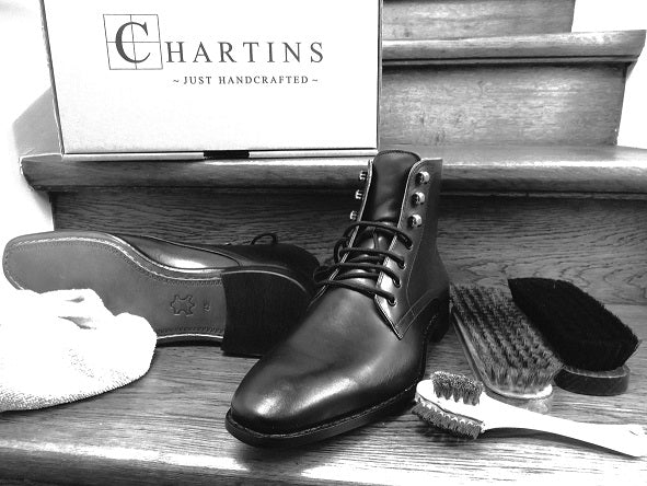 Jeder Schuh ist aus sorgfältig ausgewählten, hochwertigen Materialien hergestellt. Alle Chartins sind rahmengenäht und die Sohlen sind „hand stitched“.