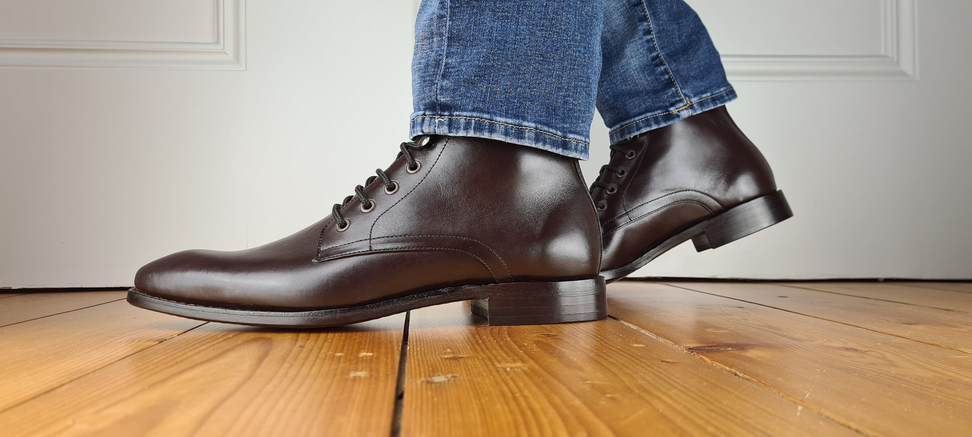 • Feinstes Leder – sowohl für das Außenmaterial, Innenmaterial, die Decksohle, die Brandsohle und Laufsohle